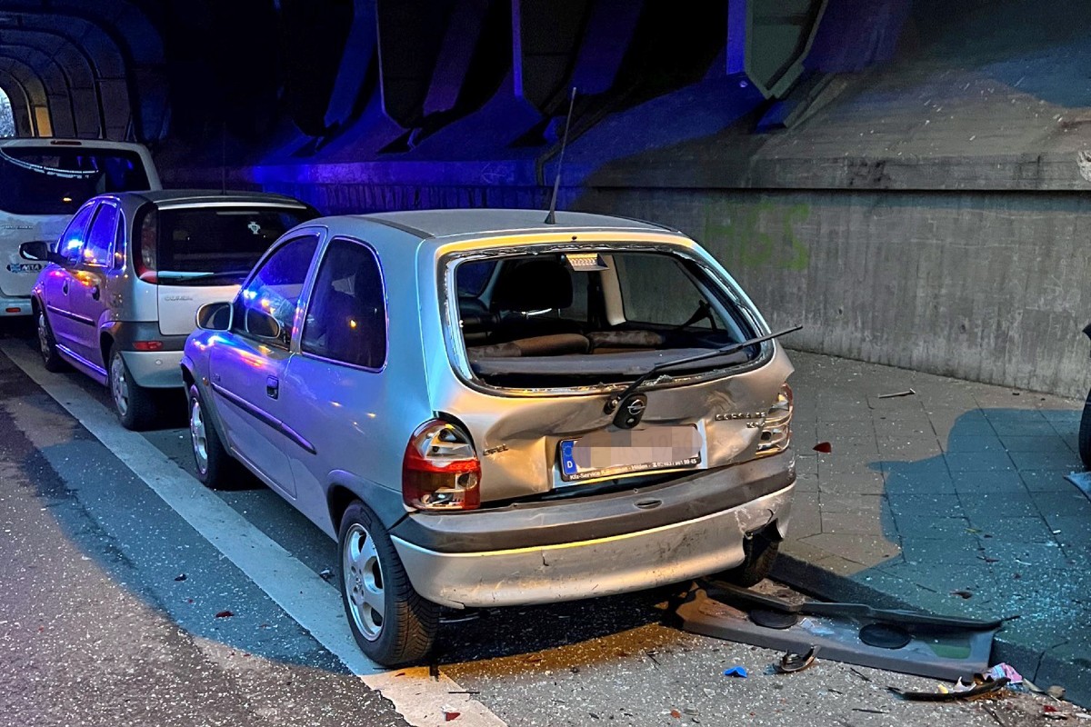 Er stieß mit einem am Fahrbahnrand abgestellten Nissan Micra zusammen, welcher durch die Wucht des Aufpralls drei weitere geparkte Fahrzeuge beschädigte. Der Führerschein des glücklicherweise unverletzten Haaners wurde sichergestellt.