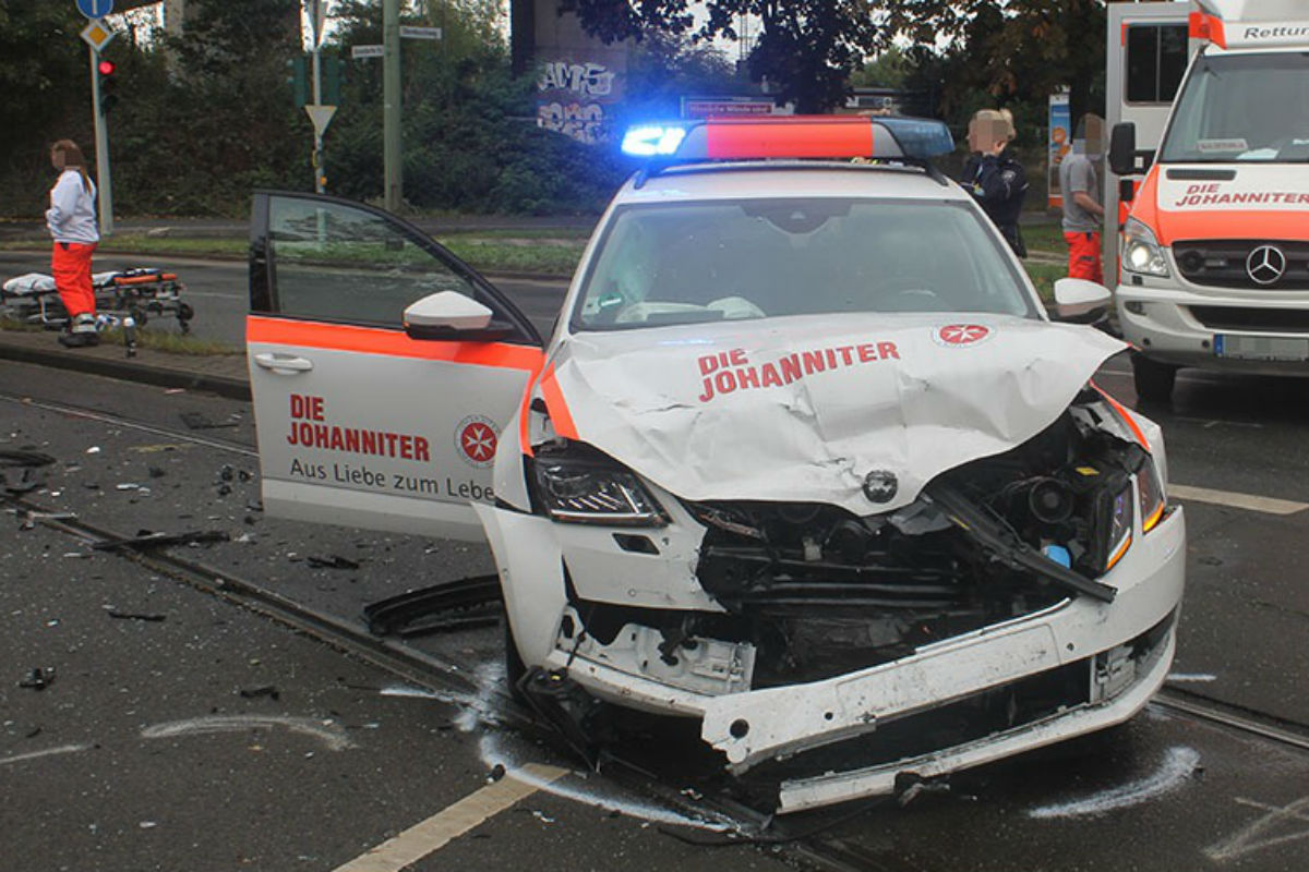 Am Dienstag (1. Oktober) kollidierten gegen 13.15 Uhr im Kreuzungsbereich Düsseldorfer Straße / Sternbuschweg in Hochfeld ein Skoda des Johanniter-Unfall-Hilfe e.V. mit einem schwarzen Hyundai.