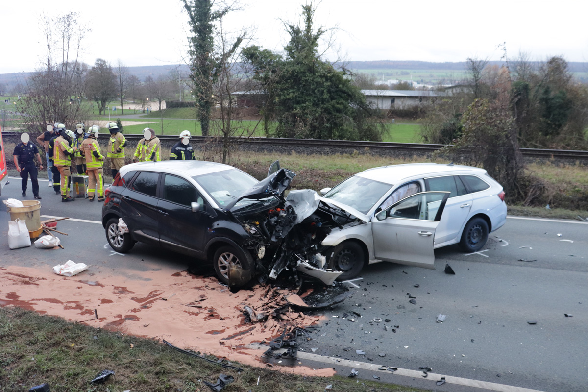 Dort kollidierten beide Pkw frontal. Bei dem Zusammenstoß verletzten sich der 43-jährige Renaultfahrer und die 27-jährige Beifahrerin im Skoda schwer und wurden ins Krankenhaus eingeliefert.