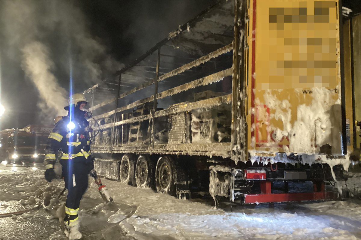 Der Lkw-Fahrer blieb bei seinen Löschversuchen unverletzt. Da der Wert der Ladung nicht bekannt ist, kann eine genaue Schadenssumme nicht beziffert werden. Am Auflieger und an der Ladung entstand Totalschaden.
