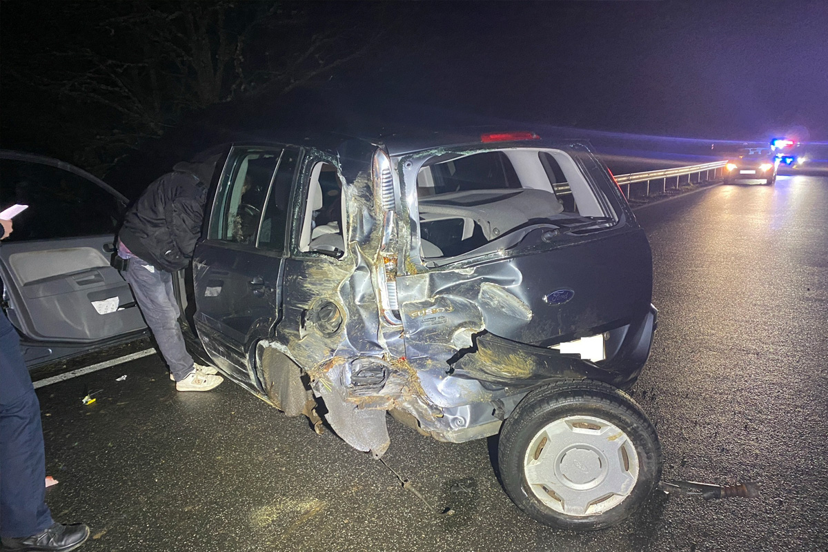 Am Donnerstagabend, 12.02.2026, kam es auf der L383 bei Hohenöllen (RP) zu einem Verkehrsunfall infolge eines technischen Defekts. Während der Fahrt brach die Hinterachse eines Fahrzeugs, das anschließend außer Kontrolle geriet und gegen eine Leitplanke prallte.