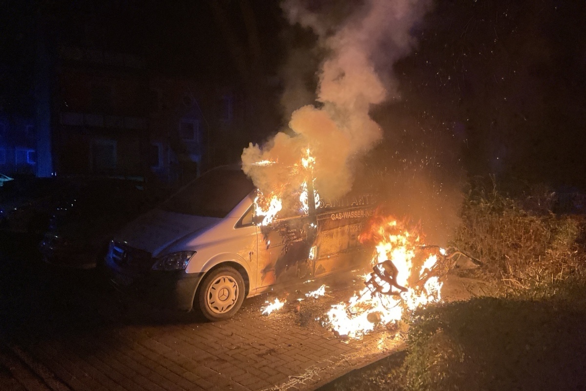 Am Dienstag gegen 23:30 Uhr kam es zu einer Alarmierung der Feuerwehr Dortmund. In der Marienbader Straße wurde ein Fahrzeugbrand gemeldet. Die Kräfte der Feuerwache 8 (Eichlinghofen) konnte bei ihrem Eintreffen die gemeldete Situation bestätigen. Auf den dortigen Parkplätzen brannten ein Transporter und ein Motorrad.