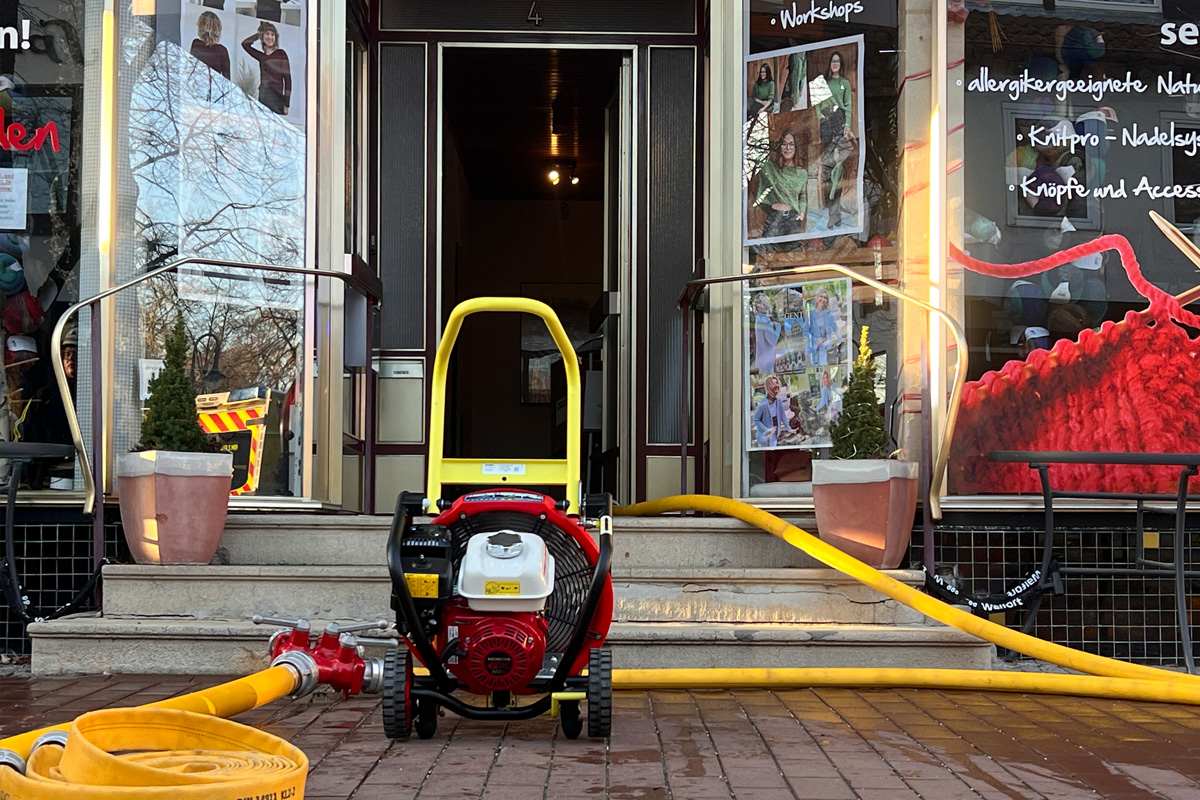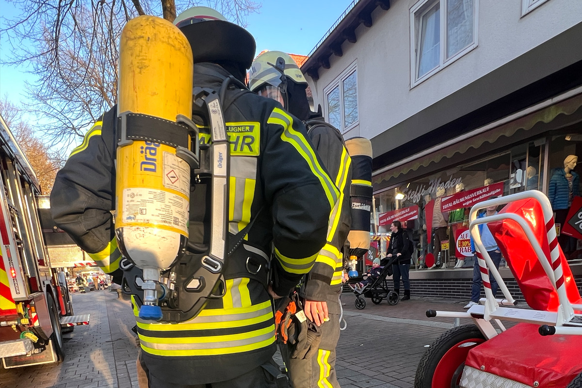 Bereits in der Meldung war bekannt, dass schwarzer Rauch aus einem Fenster im Obergeschoss eines Wohn- und Geschäftshauses dringen soll. Zudem wurde bereits nach kurzer Zeit neben einem bereits initial alarmiertem Rettungswagen ein weiterer RTW sowie ein Notarzt zur Einsatzstelle hinzugezogen.
