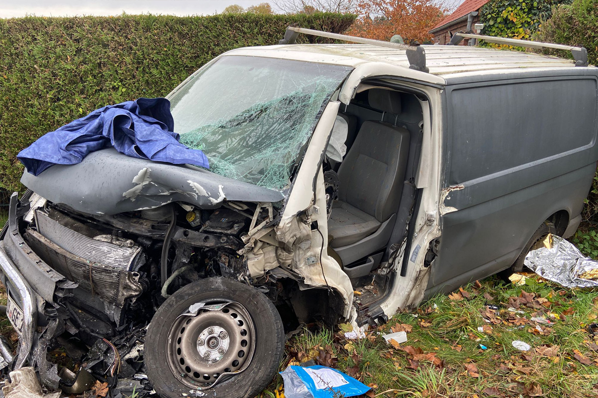 Der Transporter und der Pkw kollidierten frontal. (Bildquelle: Polizeiinspektion Stade)