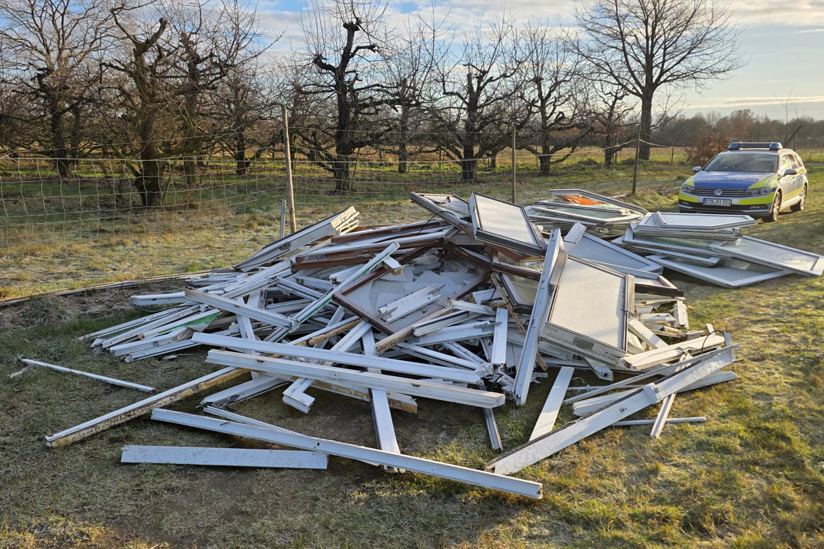 Unbekannte haben in der Nacht zu Heiligabend, 24.12.2025, in der Feldmark bei Horneburg eine große Menge alter Fenster auf einer Wiese entsorgt. Die Polizei ermittelt wegen eines Verstoßes gegen das Abfallrecht und bittet um Zeugenhinweise.