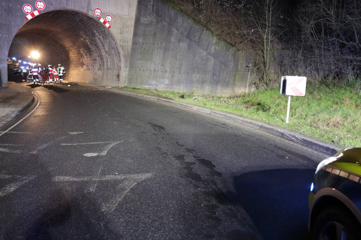 Die drei Männer waren mit einem VW Passat von Godelheim in Richtung Ottbergen unterwegs. Unmittelbar vor dem Bahntunnel kam der Wagen nach rechts von der Fahrbahn ab, stieß gegen die Bordsteinkante und dann frontal gegen die Mauer des Bahntunnels. Anschließend schleuderte der Passat zurück auf die Fahrbahn und kam im Tunnel zum Stillstand.