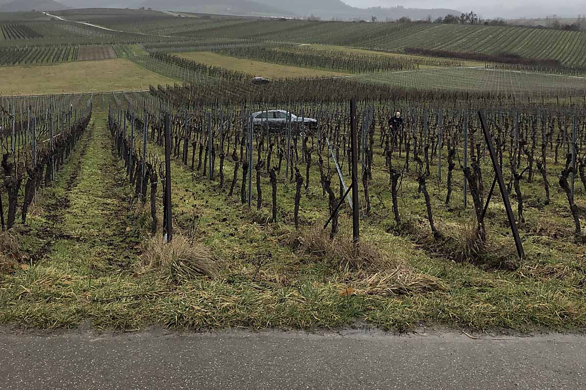 Weil er vermutlich zu schnell im Kurvenbereich unterwegs war, verlor er die Kontrolle über sein Fahrzeug und rutschte einmal durch die angrenzende Wingertszeile.