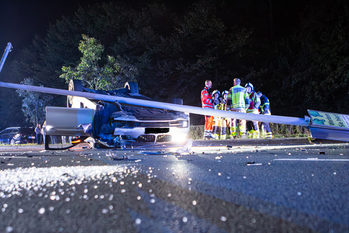 Am Samstag (27.09.2025) kam es gegen 22:20 Uhr auf der Dortmunder Straße in Iserlohn zu einem Verkehrsunfall mit einem BMW-Sportwagen, der sich überschlug.