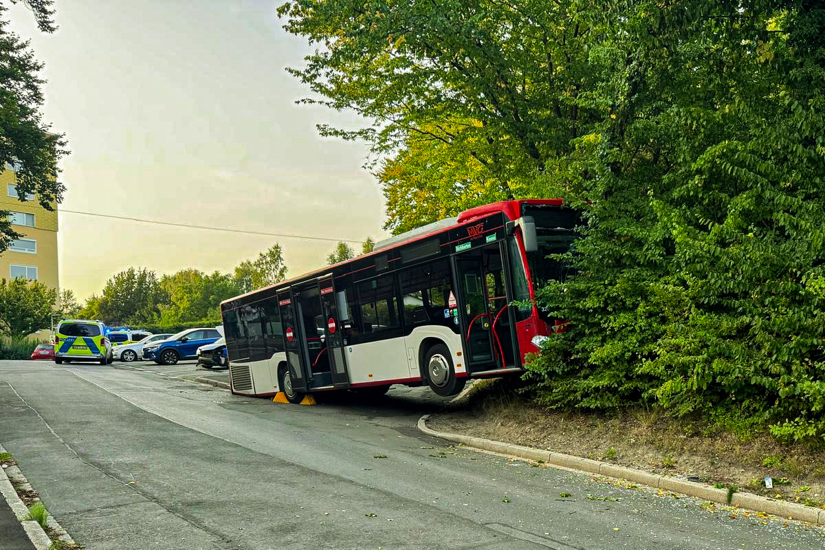 Am 14.08.2025 stieß in Iserlohn (NW) ein Linienbus aus ungeklärter Ursache mit mehreren geparkten Autos zusammen und kam in einer Böschung zum Stehen. Der Fahrer war allein im Bus und wurde zur Kontrolle ins Krankenhaus gebracht.