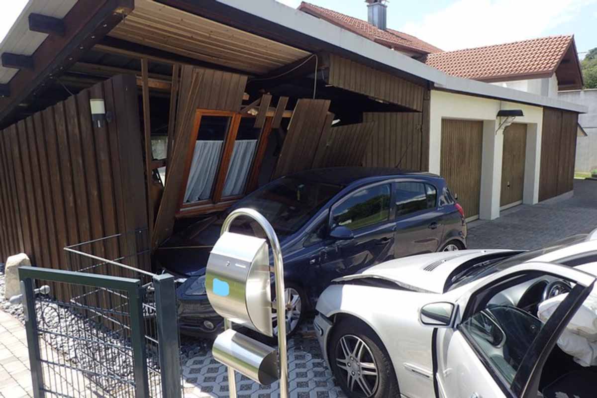 An den Autos dürften Totalschäden entstanden sein, der Schopf wurde komplett verschoben. Der Höhe des Sachschadens liegt bei mindestens 25000 Euro.