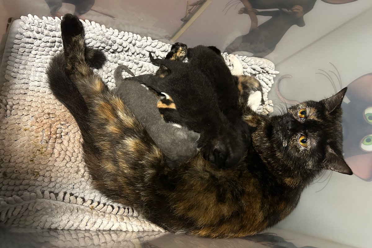 Draufansicht der Kiste, in der sich die Katzenmama mit ihren Kleinen befand. (Bildquelle: Polizeidirektion Landau)