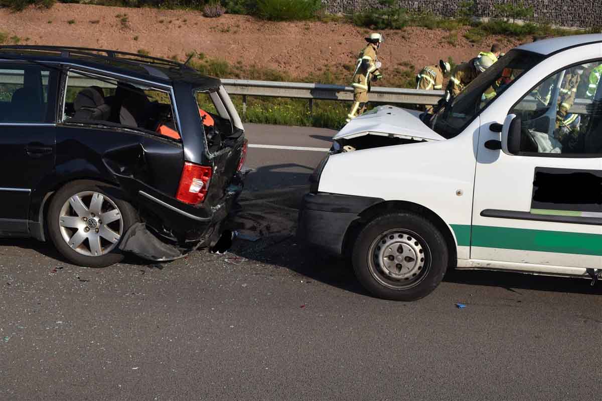 Beide Insassen des Kleintransporters wurden dabei verletzt. Um nicht in die Unfallstelle hineinzufahren, wich ein BMW vom mittleren auf den linken Fahrstreifen aus und übersah hierbei einen von hinten herannahenden Opel. Dieser konnte nun seinerseits trotz Ausweichen und Bremsen einen Aufprall nicht mehr verhindern.
