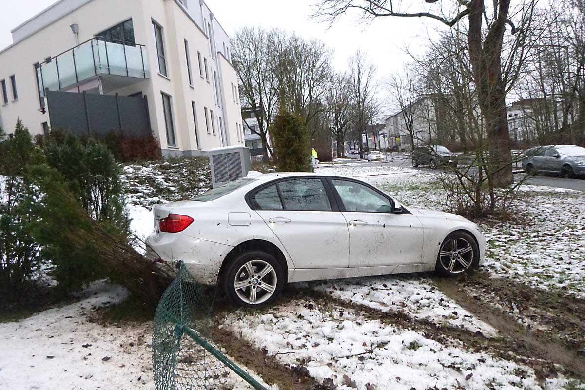Vermutlich aufgrund seiner Trunkenheit kam er auf der geraden Strecke nach links von der Straße ab, überfuhr einen hohen Bordstein und den Gehweg, rutschte über die angrenzende Grünfläche und kam schließlich in dem Gartenzaun zum Stehen. Andere Verkehrsteilnehmer waren glücklicherweise nicht zu Schaden gekommen.