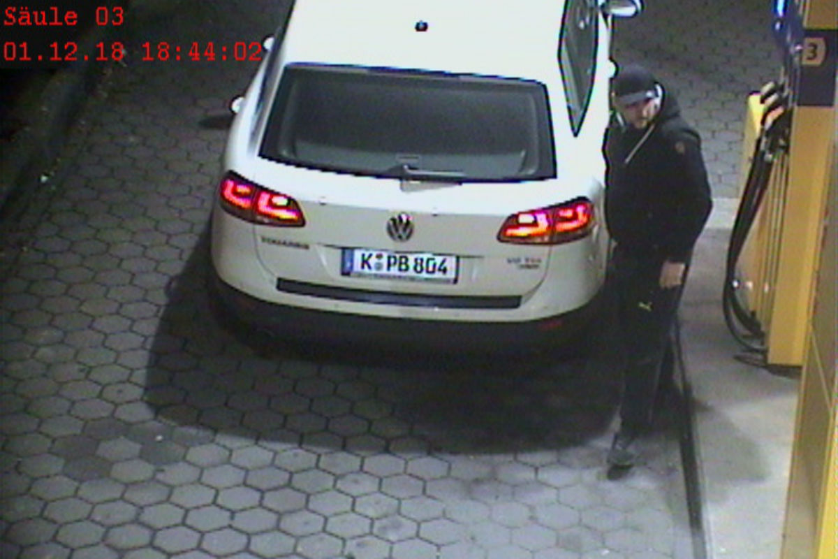 Am 01.12.2018, zwischen 18.40 Uhr und 18.50 Uhr, suchte die auf dem Bild abgebildete Person eine Tankstelle an der Schwerter Strasse in Holzwickede auf. Zwischen 18.40 Uhr und 18.50 Uhr tankte der Mann einen weissen VW, der die knapp eine Woche zuvor gestohlenen Kennzeichen besass. Er verliess die Tankstelle ohne zu bezahlen.