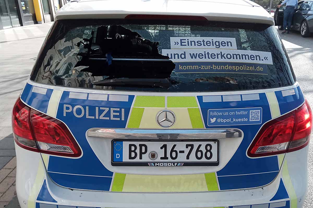 Ein Mitarbeiter der Bundespolizei begab sich gestern zum Dienstfahrzeug und stellte fest, dass die Heckscheibe auf der linken Seite zerstört war.
