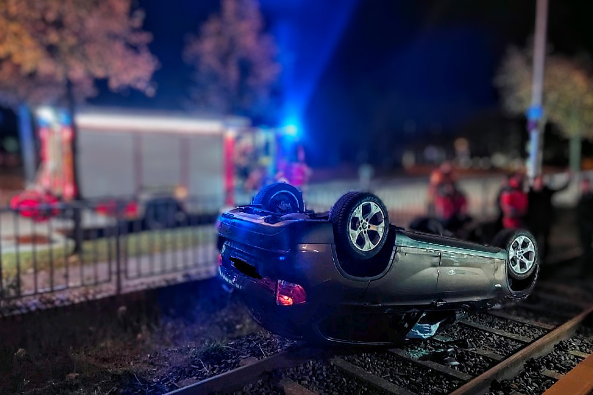 Kiel SH – Alkoholisierter Autofahrer überschlägt sich und landet im Gleisbett
