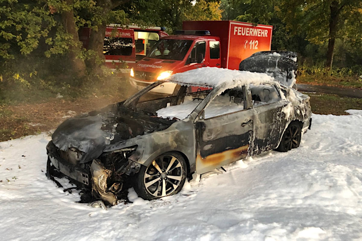 Auf dem Parkplatz in Höhe des Sportplatzes kommt es gegen 06 Uhr aus bislang ungeklärter Ursache zum Vollbrand eines geparkten Nissan Altima.