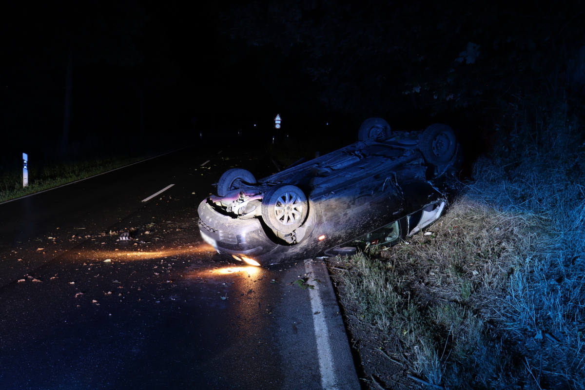Polo-Fahrer kommt von der Fahrbahn ab und landet auf dem Dach (Bildquelle: Kreispolizeibehörde Herford)