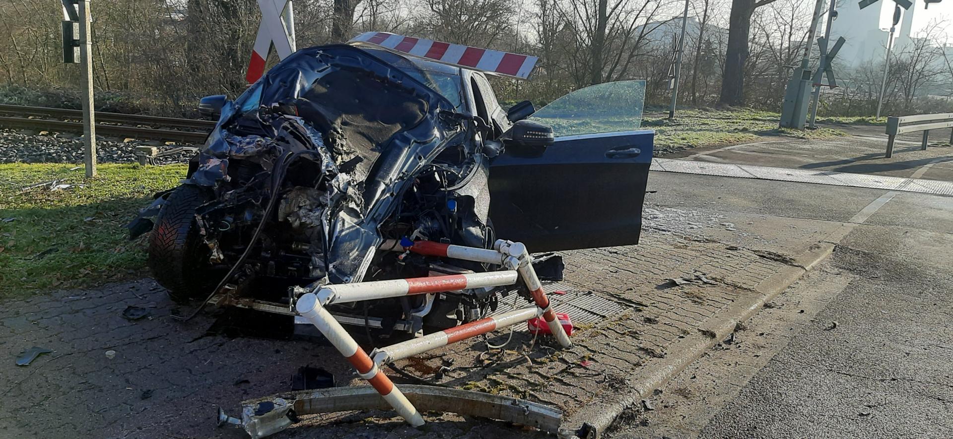 Heute Morgen kam es am Bahnübergang an der Seligenstädter Straße im Bereich von Klein Auheim zu einem Verkehrsunfall, bei dem ein PKW von einem durchfahrenden Zug des Verkehrsunternehmens "VIAS" erfasst wurde.