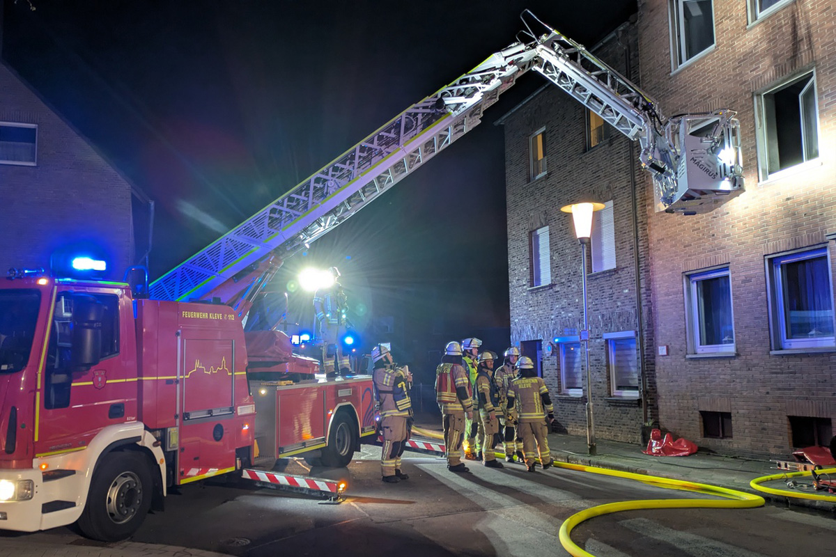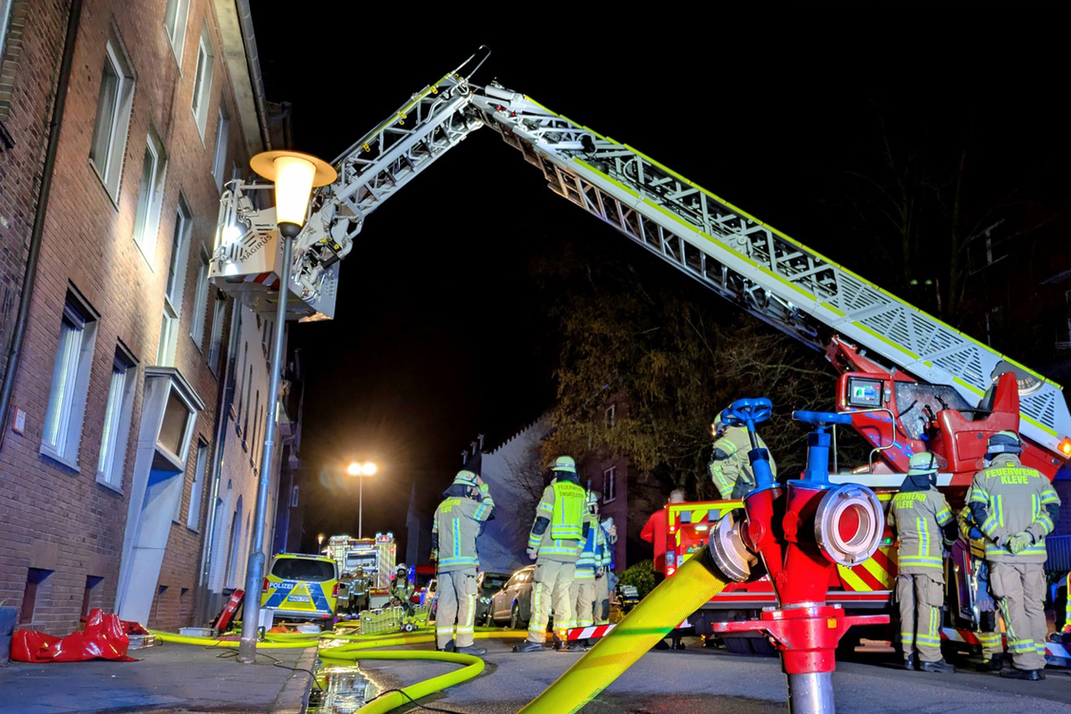In der Nacht zum 01.04.2026 kam es in Kleve (NW) zu einem Wohnungsbrand in einem Mehrfamilienhaus. Acht Personen und drei Haustiere konnten gerettet werden, Teile des Hauses sind unbewohnbar.