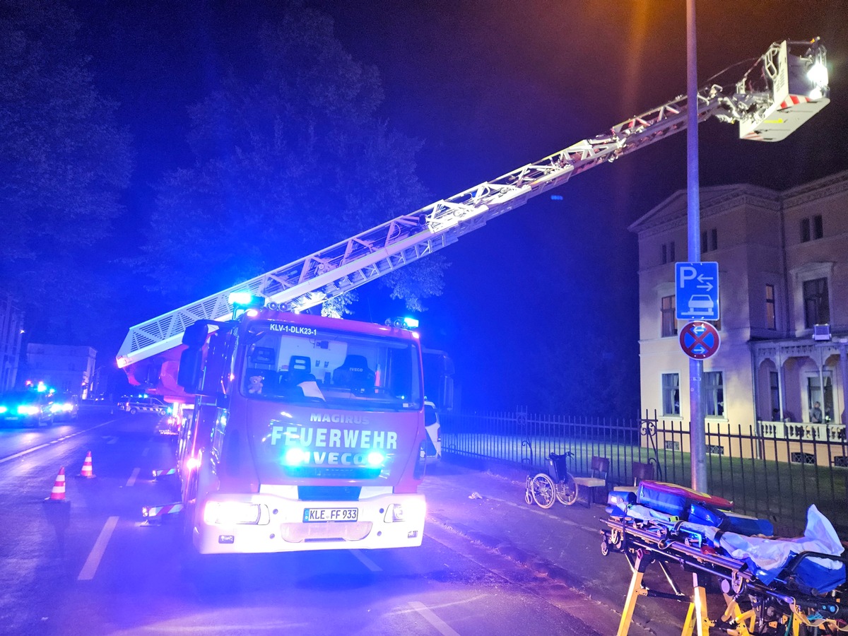 In der Nacht zum 25. Juni 2025 wurden drei Löschzüge der Feuerwehr Kleve zu einem Brand in einer Seniorenresidenz an der Tiergartenstraße in Kleve alarmiert. Das Feuer war in einem Lagerraum im ersten Obergeschoss ausgebrochen.