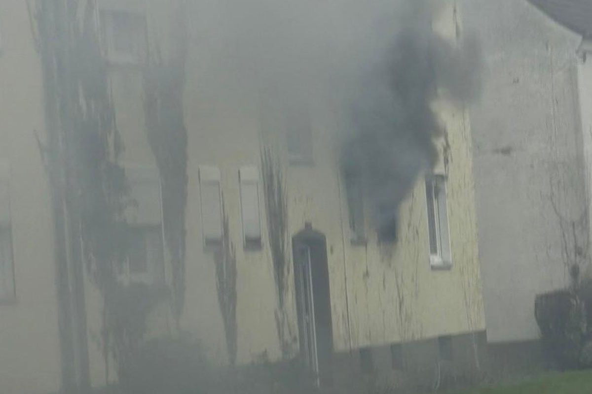 Beim Eintreffen der Feuerwehr quoll dichter Rauch aus den Fenstern. (Bildquelle: Feuerwehr Kleve)