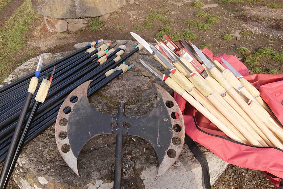 Die Speere waren heute in Eigenregie, aus mittels Klebeband an Besenstiele befestigten Küchenmessern hergestellt und absolut ohne Gebrauchsspuren.