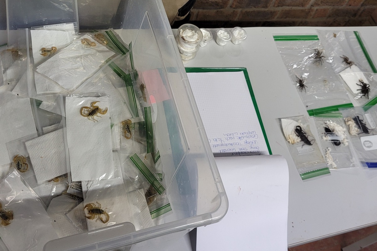 "Gerade meine Kolleginnen und Kollegen am Flughafen sind bei Kofferkontrollen ja so einiges gewöhnt, aber was sie hier fanden konnten sie kaum glauben. Fast 190 Vogelspinnen, Wolfsspinnen und Springspinnen, mehr als 430 Skorpione sowie rund 20 Hundertfüßer und Käfer waren einzeln oder in Gruppen in Plastiktütchen oder Kunststoffbehältern in diese Box gequetscht. Den tierschutzwidrigen Transport überlebten einige der Spinnentiere und Skorpione leider nicht", so Ahland weiter.