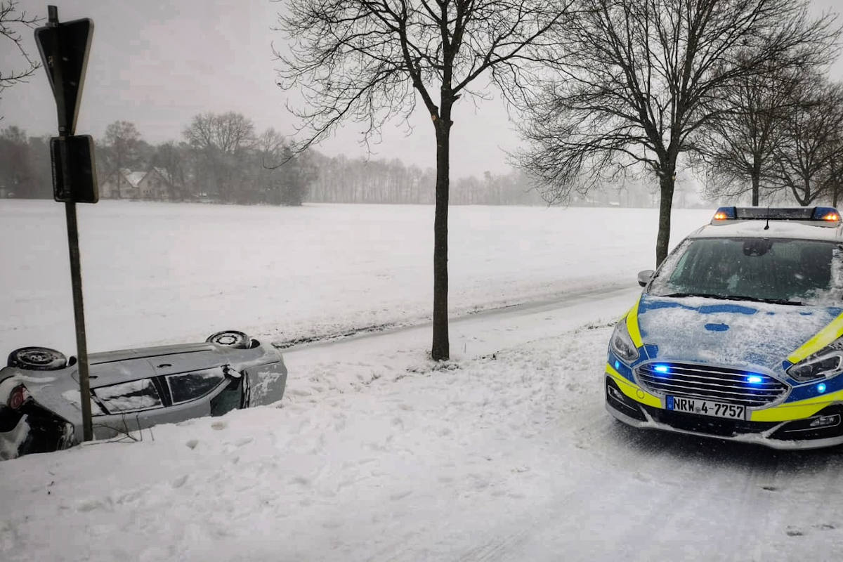 Auf der der K28 bei Paderborn-Sande überschlug sich mittags ein VW. Die beiden Insassen sowie die Beteiligten der anderen Unfälle blieben unverletzt. Gegen 17.20 Uhr verunglückte ein Imbiss-Lieferant auf der Elser Hude bei Paderborn-Elsen. Sein Wagen kam ins Rutschen und prallte gegen einen Baum. Der Fahrer zog sich Verletzungen zu und wurde mit einem Rettungswagen in ein Krankenhaus gebracht.