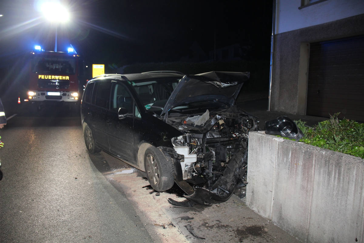 Samstag kurz nach Mitternacht (12.06.2021, 01:05 Uhr) befuhr ein 30-jähriger Mann mit seinem PKW die Heesstraße in Kreuztal-Junkernhees in Fahrtrichtung Kreuztal. Hierbei kam er auf der geradlinig verlaufenden Strecke nach links von der Fahrbahn ab und prallte dort vermutlich ungebremst gegen eine Betonmauer.