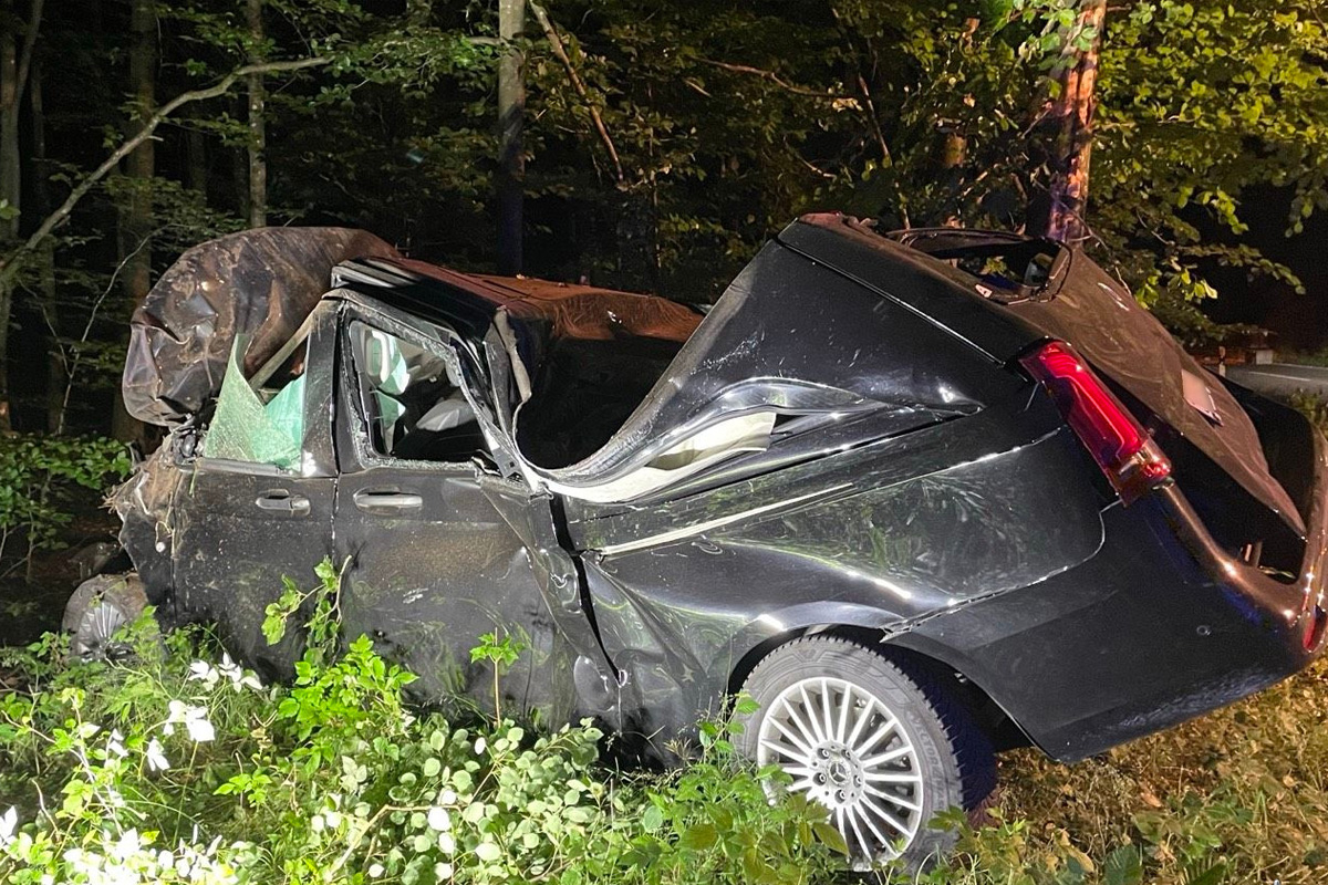 Der Wagen kam von der Straße ab, kippte zunächst zur Seite und prallte mit Dach und Motorhaube gegen einen Baum, der sich neben der Fahrbahn befand.