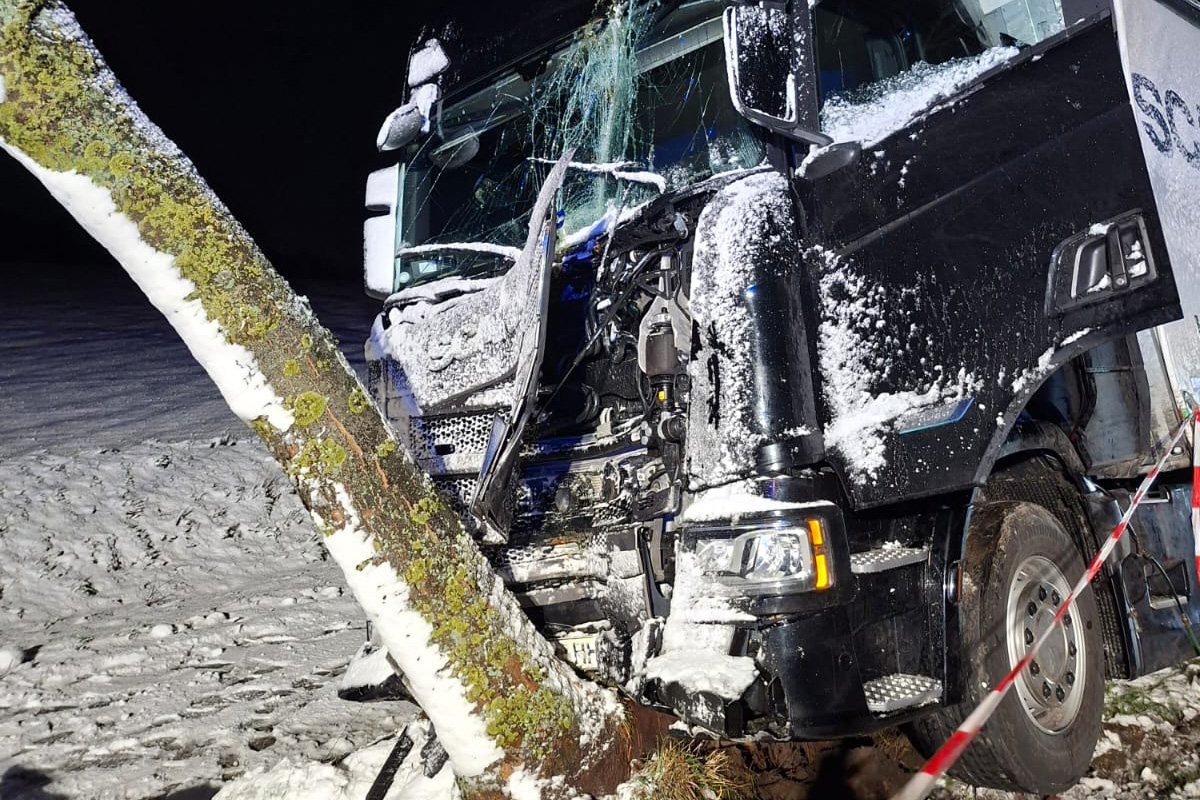 Der Sattelzug war frontal gegen einen Baum geprallt. (Bildquelle: Polizeiinspektion Stade)