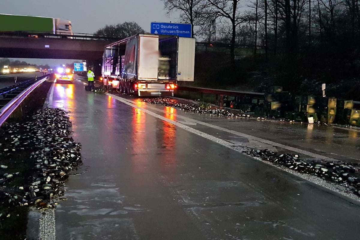 Am Freitagmorgen verlor ein 48-jähriger Lkw-Fahrer bei seiner Fahrt durch das Bremer Kreuz größere Mengen Kisten an Bier.