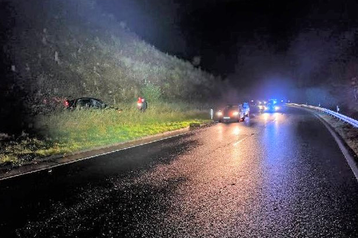 Das Fahrzeug rutschte von der Straße, prallte zunächst gegen einen Leitpfosten und kam erst rund 50 Meter weiter im Flurbereich zum Stehen.