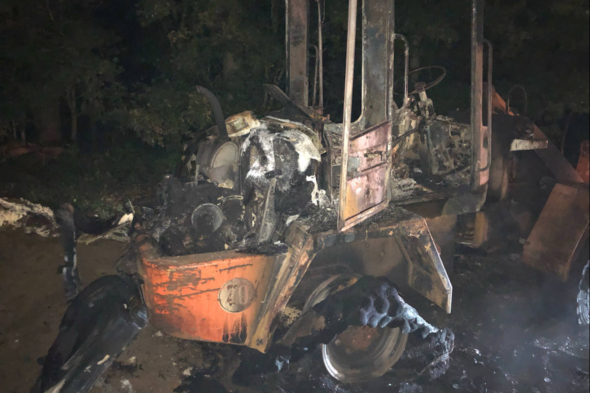 Ein Anwohner hatte gegen 1:40 Uhr Knallgeräusche von einem Wirtschaftsweg nahe der Straße "Auf dem Kurzenbruch" wahrgenommen. Als er der Ursache auf den Grund ging, stellte er fest, dass ein auf dem Wirtschaftsweg abgestellter kleinerer Bagger (Radlader) brannte. Der Mann alarmierte die Feuerwehr, die zwar schnell am Einsatzort war, das vollständige Ausbrennen des Radladers jedoch nicht verhindern konnte.