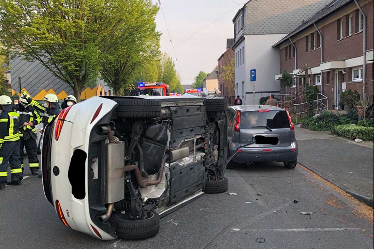 Das Fahrzeug der Langenfelderin stieß mit einem am Fahrbahnrand geparkten PKW Nissan zusammen, überschlug sich und kam auf der Fahrzeugseite zu liegen.