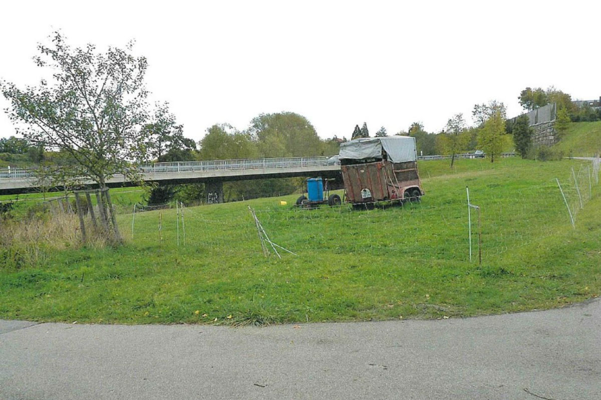Die Schafweide, auf der das Tier geschlachtet wurde. (Bildquelle: Polizeipräsidium Ludwigsburg)