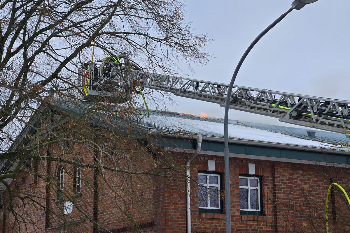 Am Montagmorgen (02.02.2026) ist in einem ehemaligen landwirtschaftlichen Gebäude nahe Linau (Kreis Herzogtum Lauenburg) ein Schwelbrand im Dachstuhl ausgebrochen. Der Einsatz gestaltete sich wegen der Metall-Dacheindeckung und starker Glätte durch gefrierendes Löschwasser besonders schwierig.