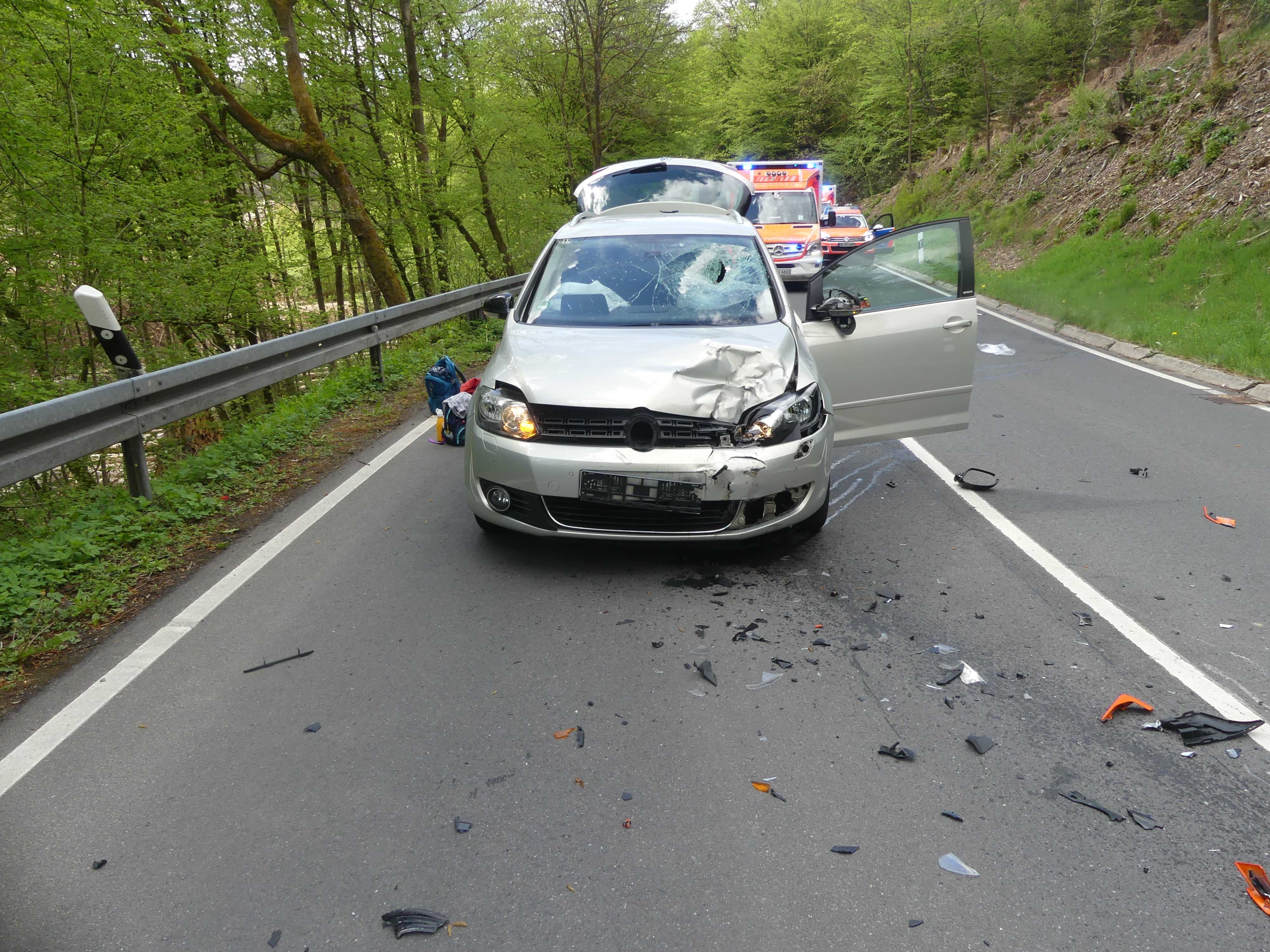 Drei Verletzte bei Frontalzusammenstoß zwischen Auto und Motorrad (Bildquelle: Kreispolizeibehörde Oberbergischer Kreis)