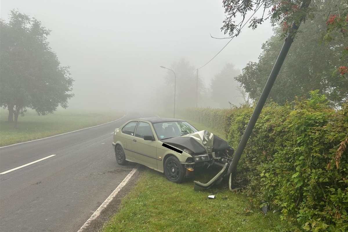 In einer leichten Rechtskurve geriet der Fahrer aufgrund Unachtsamkeit nach links von der Fahrbahn ab und kollidierte mit einer Straßenlaterne.