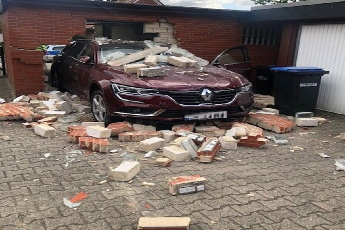 Ein über 80-jähriger Senior beabsichtigte nach ersten Erkenntnissen mit seinem Pkw Renault geradeaus in seine Garage zu fahren. Mutmaßlich aufgrund seines falschen Schuhwerkes fuhr der Senior mit Vollgas durch seine Garagenwand und stoppte erst innerhalb seines Innenhofes.