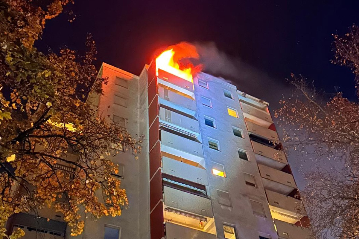 Am 03.11.2025 gegen 5:30 Uhr kam es im obersten Stockwerk eines Mehrfamilienanwesens im Potsdamer Weg im Stadtteil Vogelstang zu einem Wohnungsbrand. Aus bislang unbekannten Gründen brach dort ein Feuer aus.