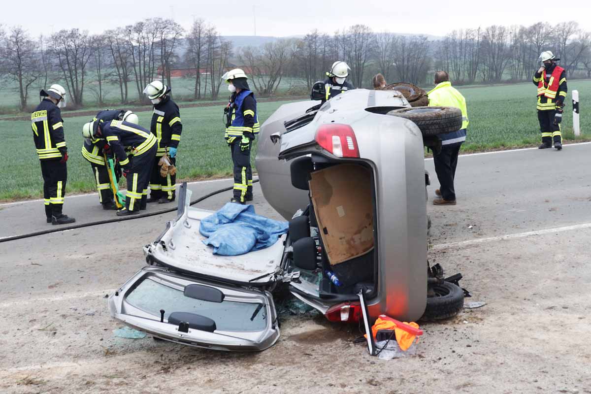 Erst mit Hilfe der Feuerwehr konnten zwei Personen aus einem Auto befreit werden, das nach einem Unfall auf der Fahrerseite gelandet und liegengeblieben war. Beide kamen in ein Krankenhaus.