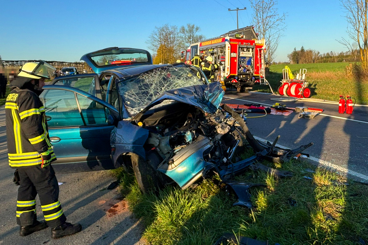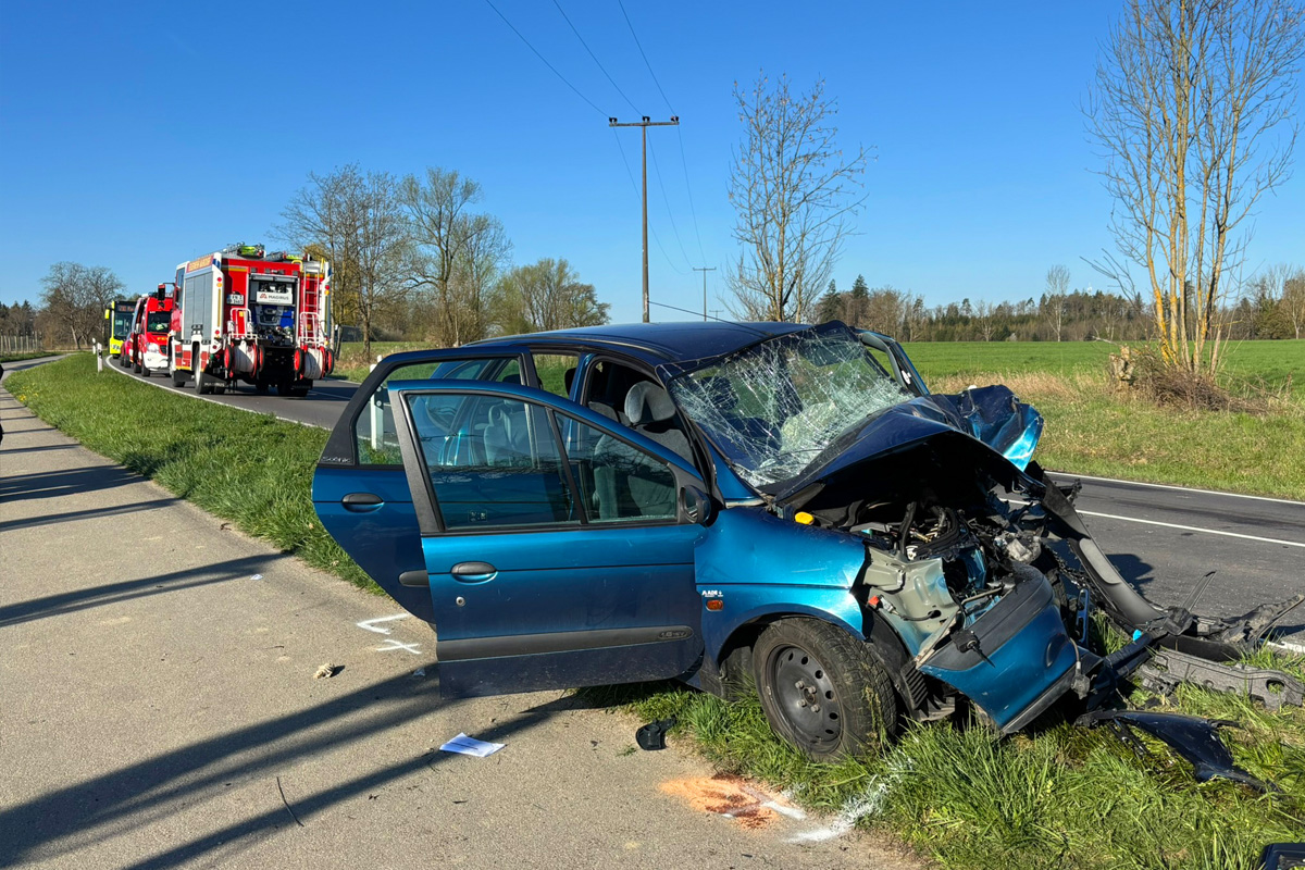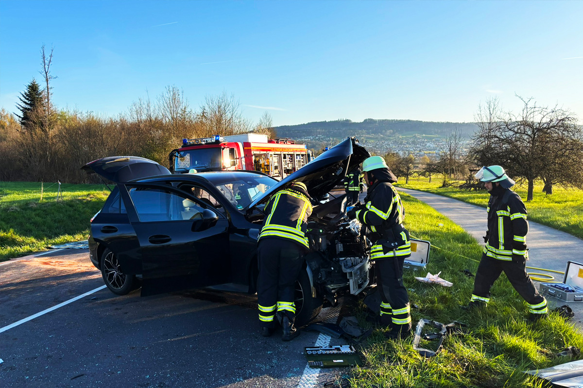 Die Freiwillige Feuerwehr Markdorf rückte zur Unfallrettung aus und befreite den eingeklemmten Fahrer eines Renault Megane mit hydraulischem Rettungsgerät aus seinem