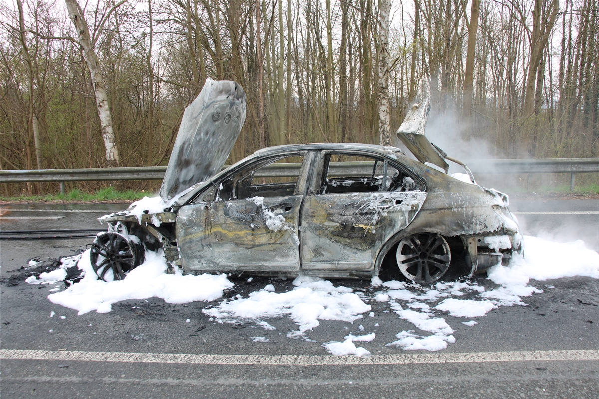 Wegen eines brennenden Pkws sind Feuerwehr und Polizei am Donnerstagmittag um kurz nach 13 Uhr an die Abfahrt der B 65 zur B 482 gerufen worden. Bei Eintreffen der Beamten befand sich der betroffene Mercedes bereits im Vollbrand. Personen wurden nicht verletzt.