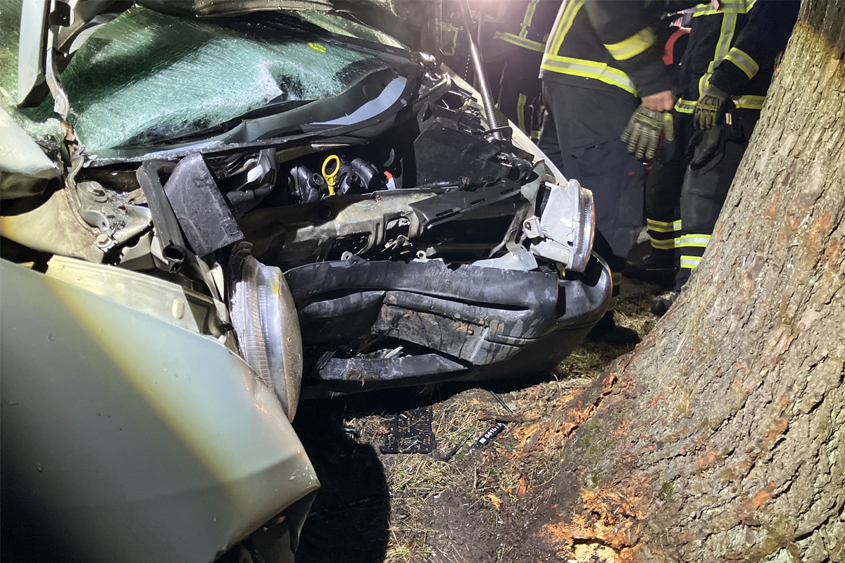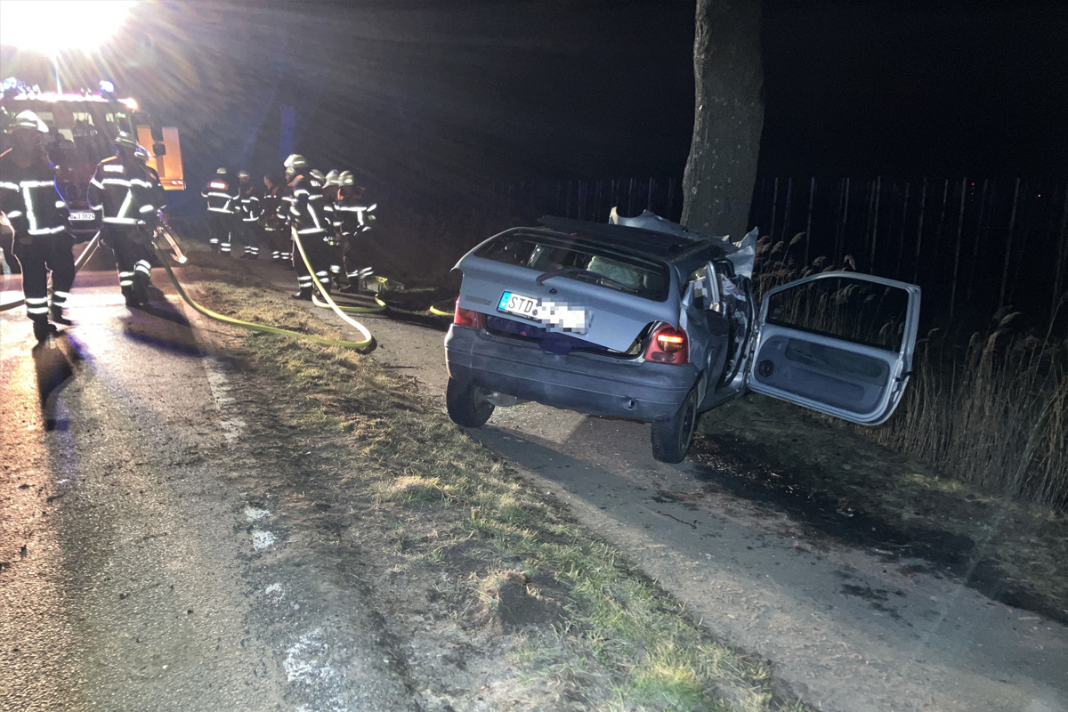 Am Sonntagabend, 01.03.2026, gegen 21:00 Uhr kam ein 43-jähriger Autofahrer in Mittelnkirchen (NI) mit seinem Renault von der Fahrbahn ab und prallte gegen einen Baum. Er wurde schwer verletzt und von der Feuerwehr aus dem Fahrzeug befreit.
