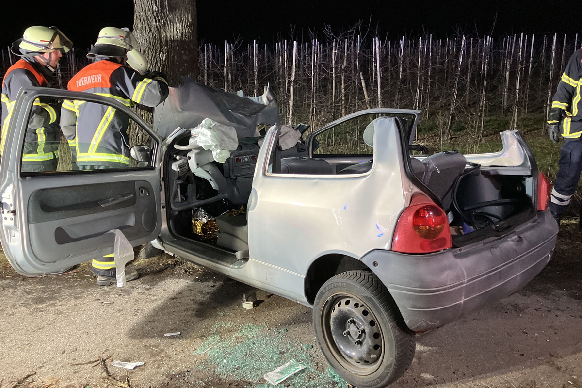 Der Twingo-Fahrer war gegen einen Baum geprallt. (Bildquelle: Polizeiinspektion Stade)