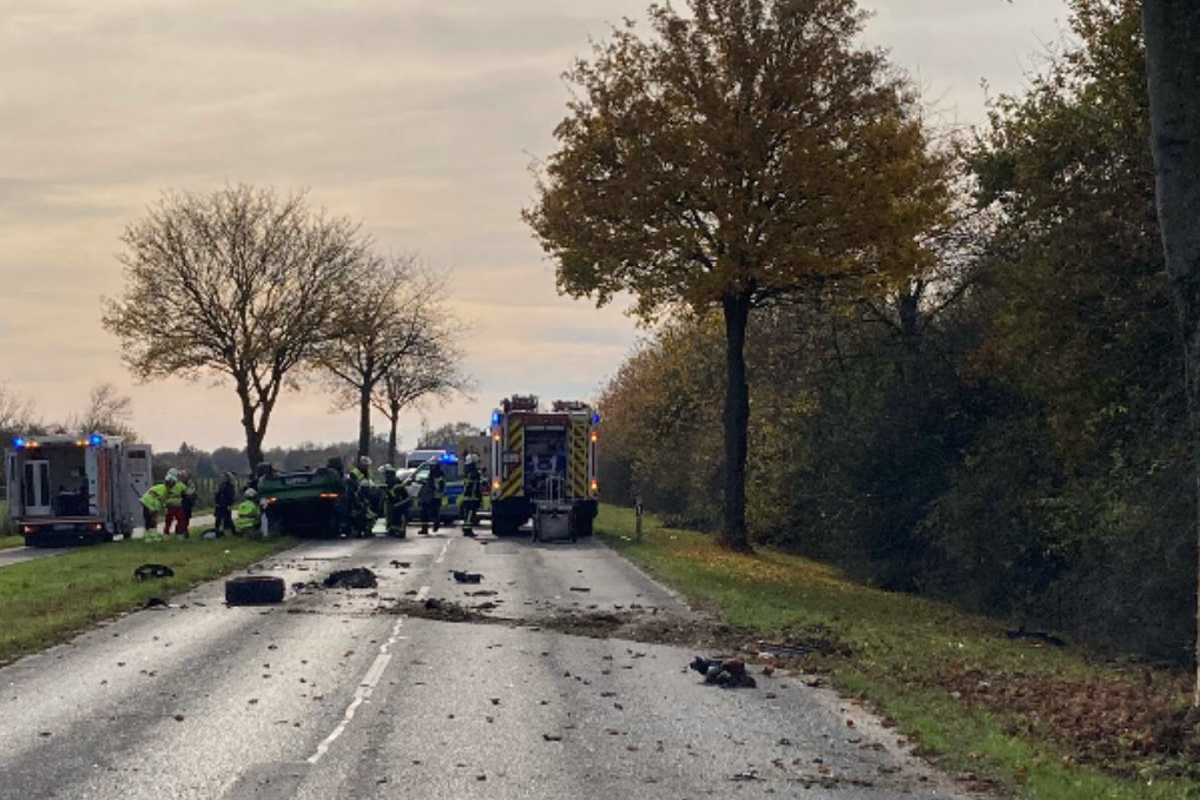 Durch die Wucht des Aufpralls überschlug sich das Fahrzeug und kam auf dem Dach liegend auf der Fahrspur des Gegenverkehrs zum Stillstand.