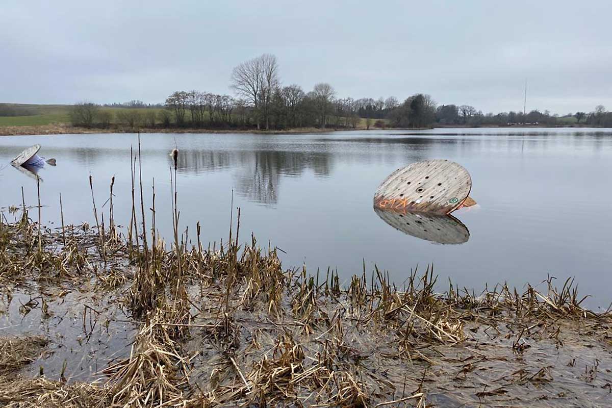 Die Rollen waren ursprünglich mit Breitbandkabel bestückt und haben einen Gesamtwert von 1000 Euro. Die leeren Trommeln wurden wahrscheinlich auf den zugefrorenen See an die andere Uferseite gerollt und liegen dort nun im Wasser.