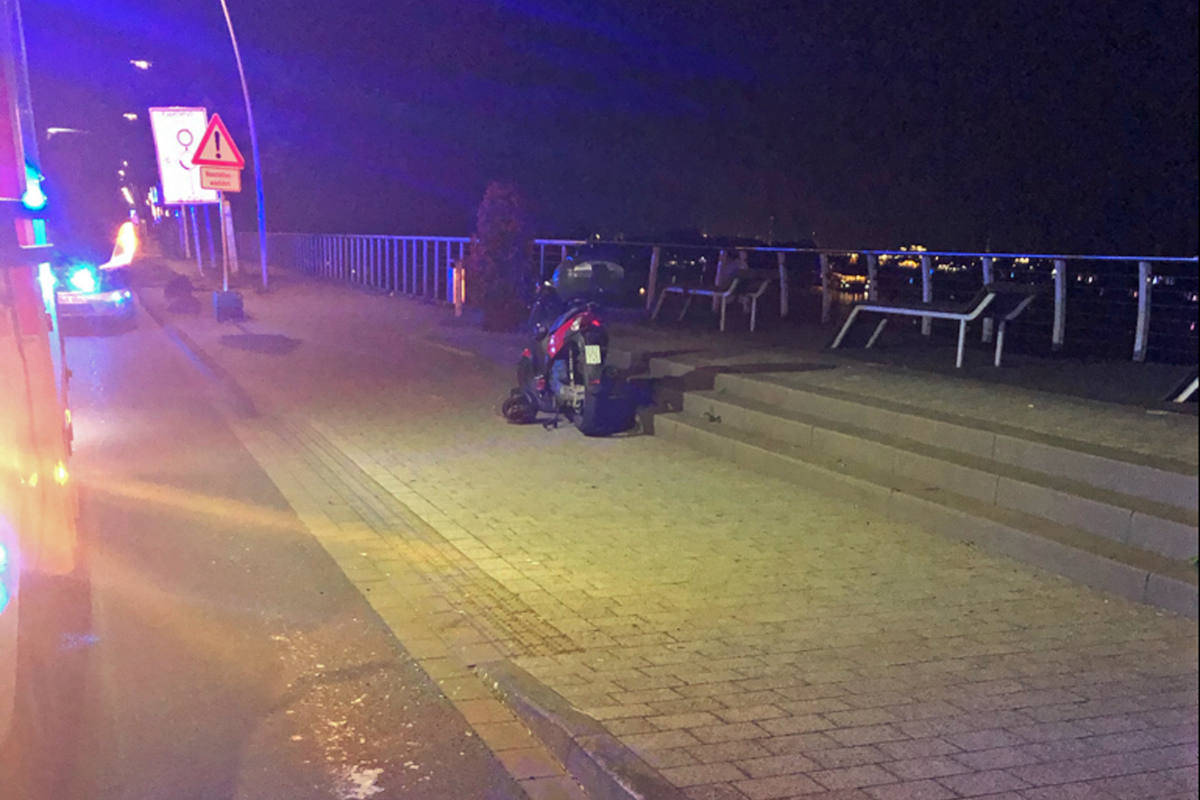 Ersten Erkenntnissen zufolge war der 55-jährige Mann aus Mettmann mit seinem Moped der Marke Changzhou Kwang gegen 23.30 Uhr auf der Rheinpromenade unterwegs. Als er über eine Bordsteinabsenkung auf Höhe der Hausnummer 4 fahren wollte, um anzuhalten, lenkte er ersten Erkenntnissen zufolge zu früh ein und stieß dadurch mit dem Vorderrad gegen den Bordstein. Der 55-Jährige stürzte daraufhin mit seinem Moped und wurde schwer verletzt. Aufmerksame Zeugen und Ersthelfer kümmerten sich bis zum Eintreffen der Rettungskräfte um den Mann, der anschließend zur stationären Behandlung in ein Krankenhaus gebracht wurde. Das Moped wurde durch den Sturz nur leicht beschädigt.
